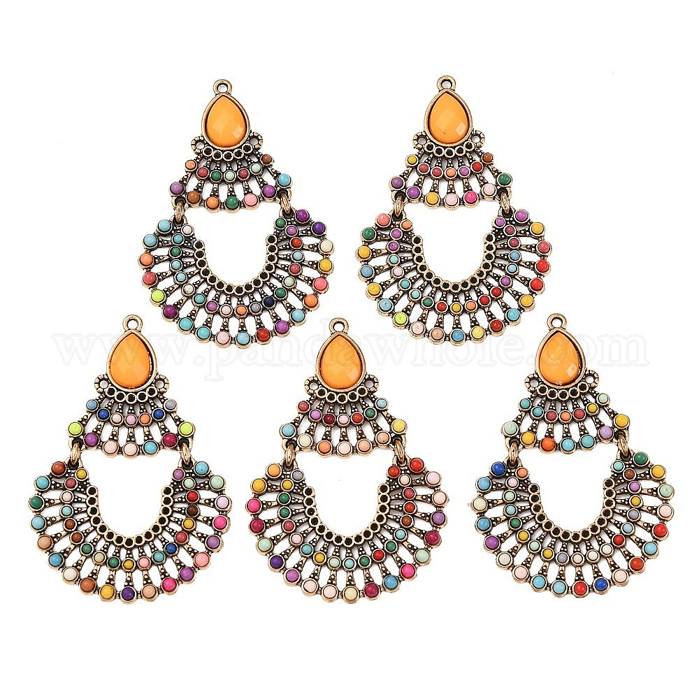 • Античное Золото Подвески из акрилового сплава со стразами, очарование слезы, античное золото , пригодный для стразов 1 мм, 52.5x36x4 мм, отверстие : 1.6 мм