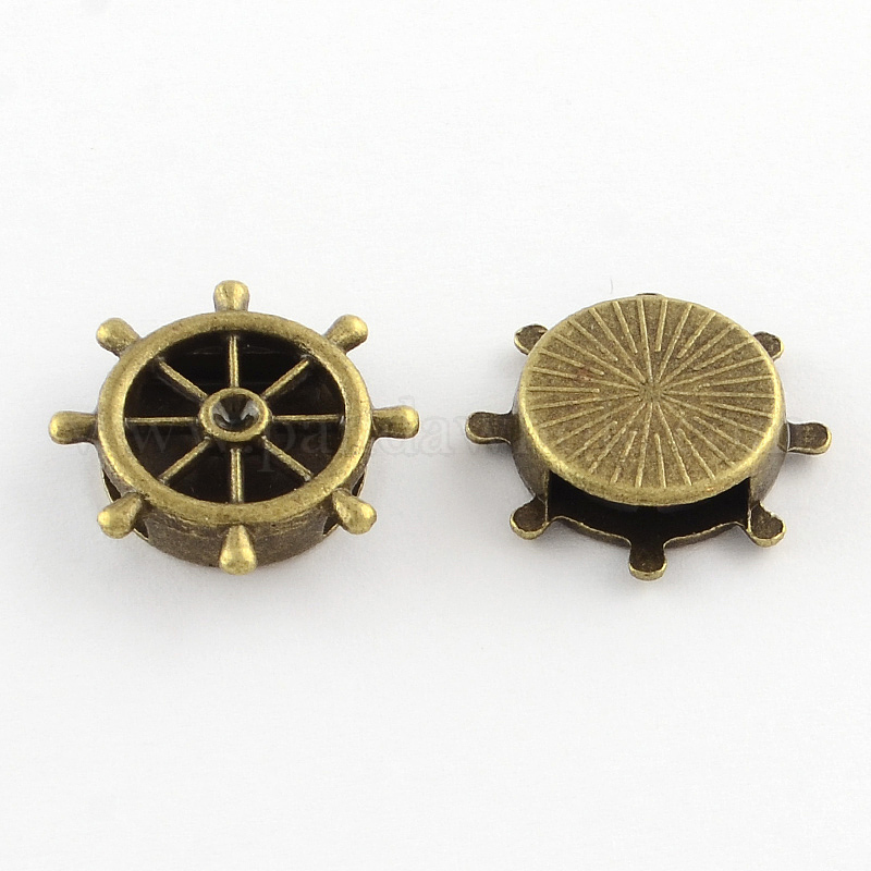 Тибетский стиль настройки руля сплав горный хрусталь слайд очарование, без кадмия и без свинца, 21x21x5 мм, отверстие: 12x3 мм , подходит для 2.5 мм стразов , около 386 шт / 1000 г