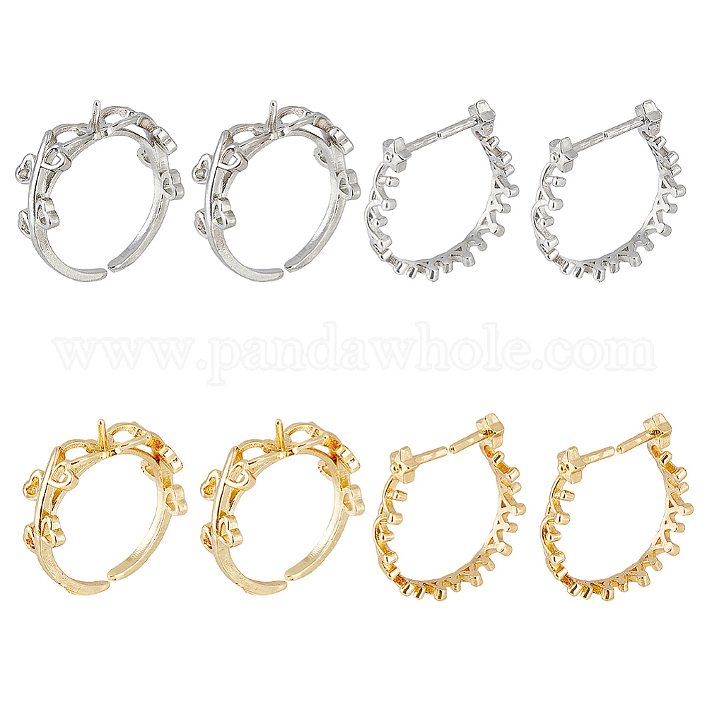 8 шт 4 стиль стойка покрытие латунь открытая манжета кольцо настройки, для полуполых бусин , долговечный, сердце лист и корона