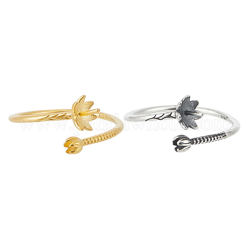 2 шт. 2 цвета 925 серебряные манжеты с открытым дизайном, крепления для колец с жемчужным гнездом, настройки колец для полупросверленных бусин