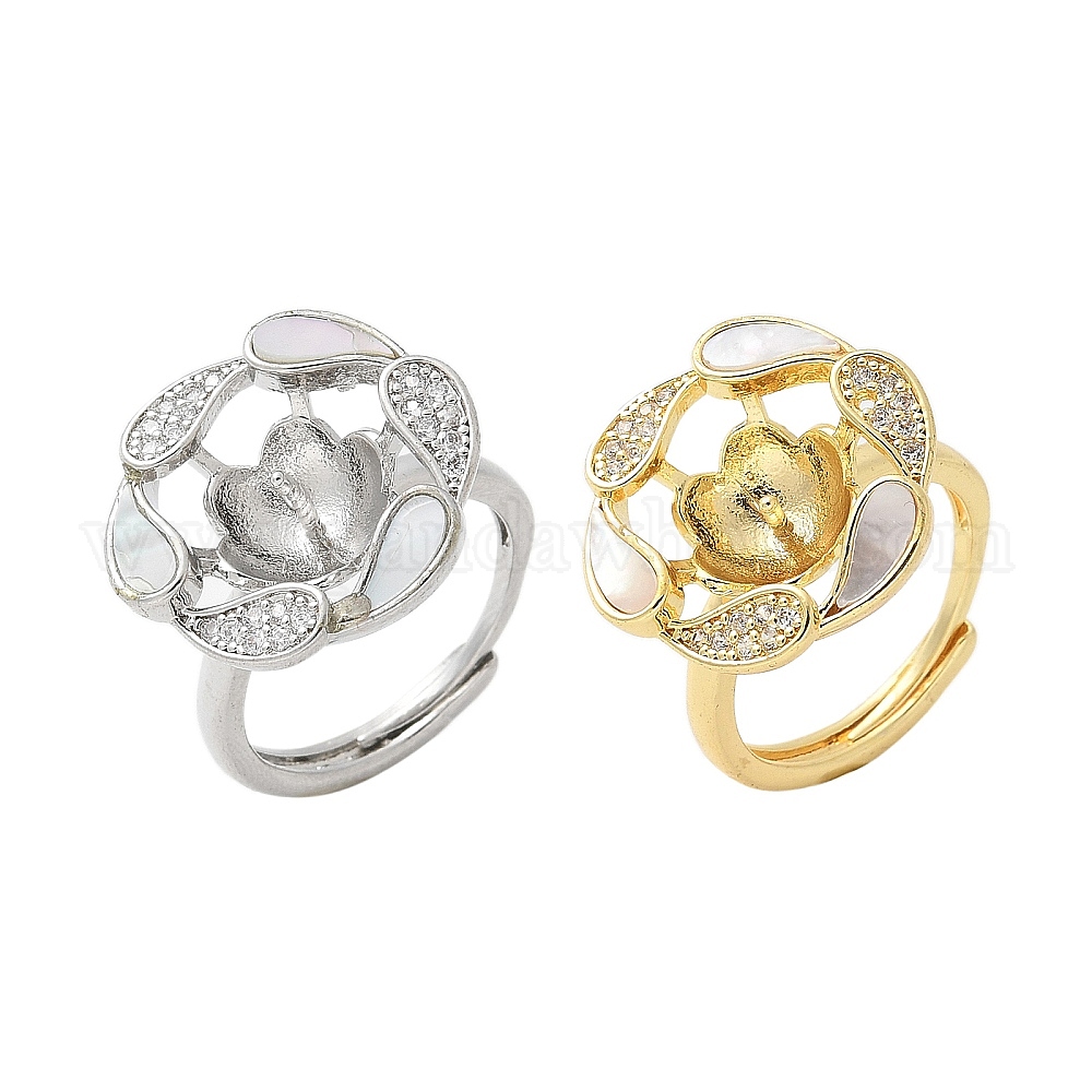 Цветочная латунная оболочка и кубический цирконий регулируемые оправы колец, за половину пробурено бисера, стойки покрытие, долговечный, без свинца и без кадмия