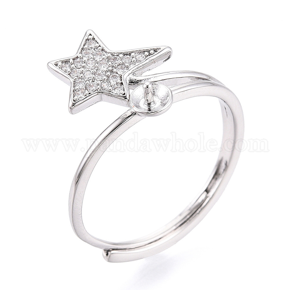 Регулируемые оправы колец в форме звезды из латуни с микропаве из прозрачного кубического циркония, за половину пробурено бисера