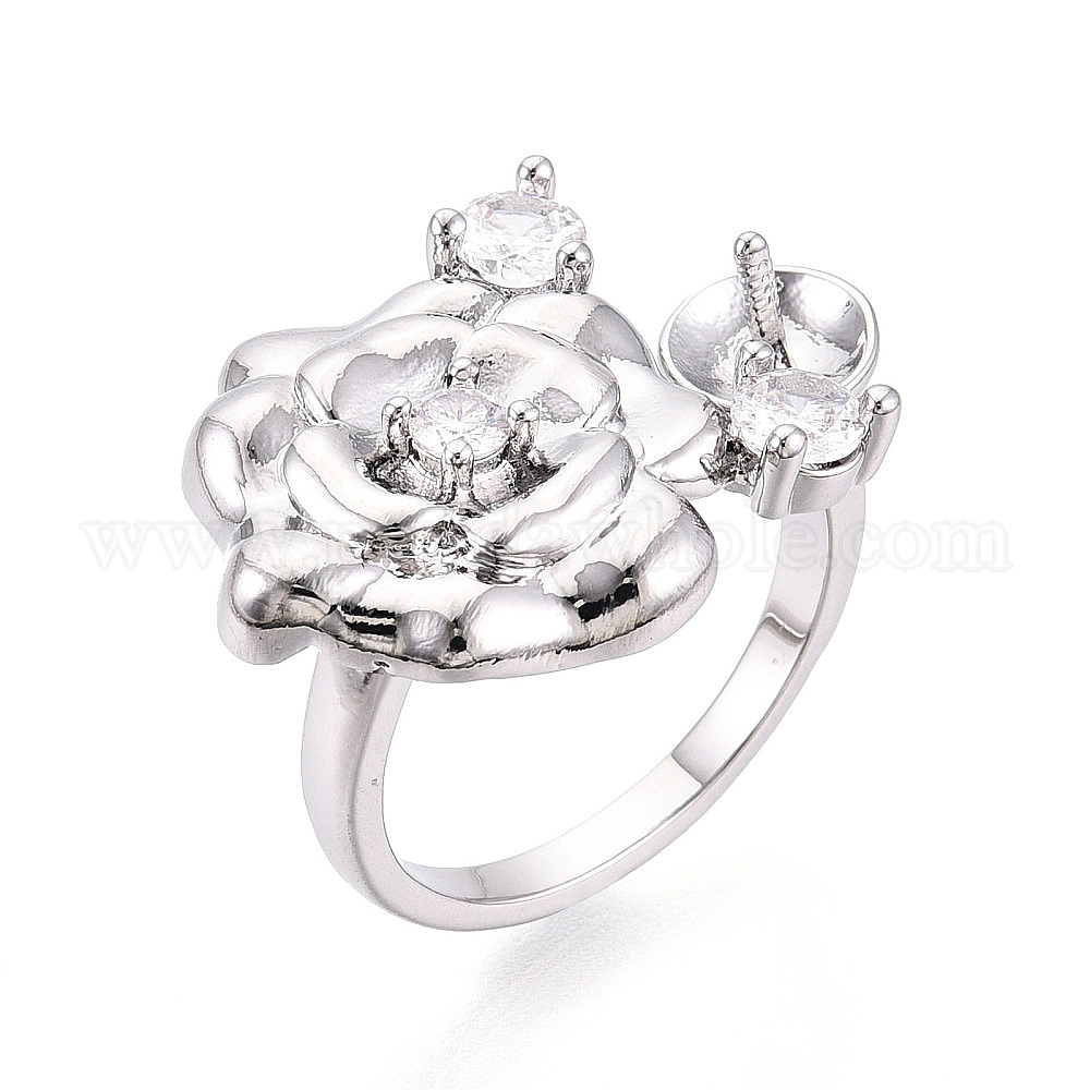 • Платинированный Оправы для колец-манжет из цветочной латуни с микропаве из прозрачного кубического циркония, за половину пробурено бисера, без кадмия, без никеля и без свинца, Реальная платина, штифты : 1 мм, 16.5 мм, размер США 7 3/4 (17.9 мм)