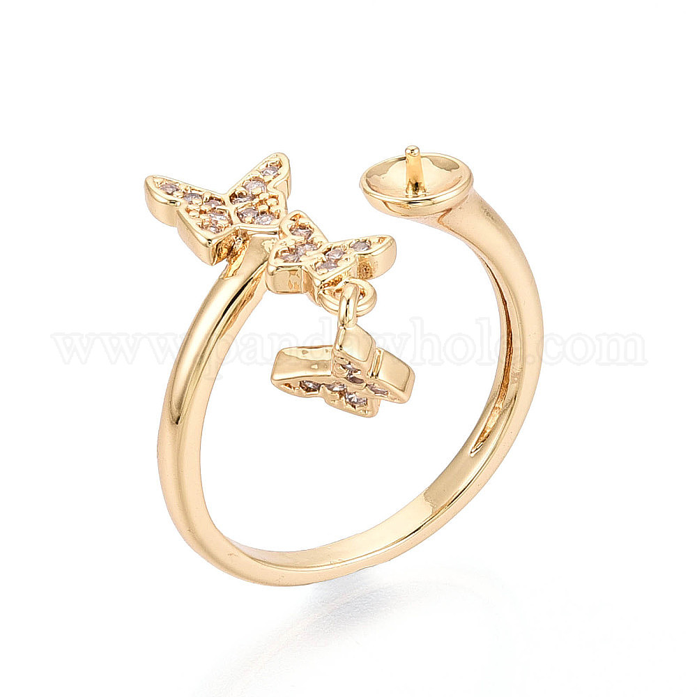 • Настоящее золото 18K Кольца-манжеты с бабочками из латуни с микропаве из прозрачных кубических цирконий, для полуполых бусин , реальный 18 k позолоченный, штифты : 0.9 мм, внутренний диаметр: 17~17.5 мм