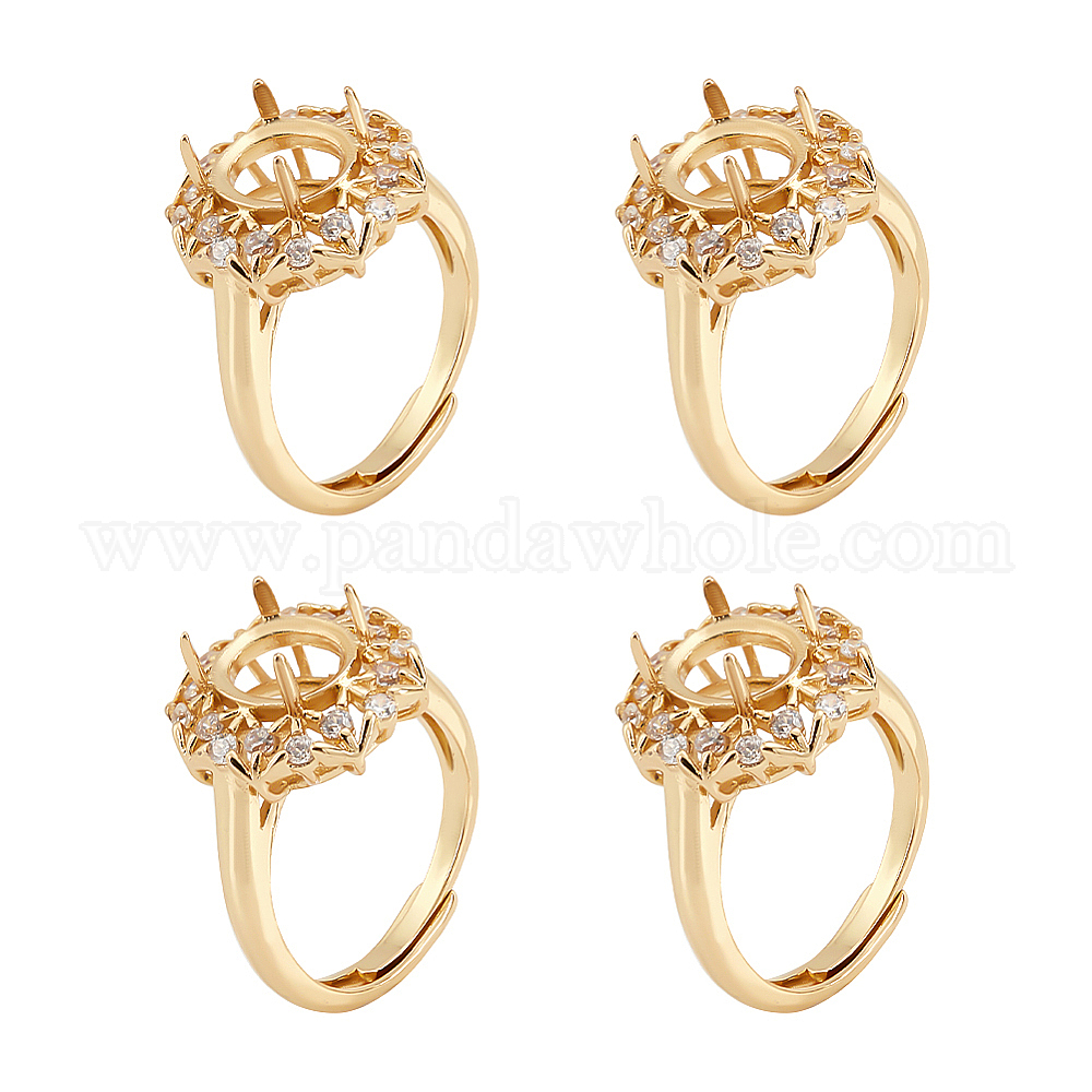 4шт. регулируемые латунные оправы для колец с микропаве из прозрачного кубического циркония, 4 настройки кольца зубца когтя, долговечный, цветок