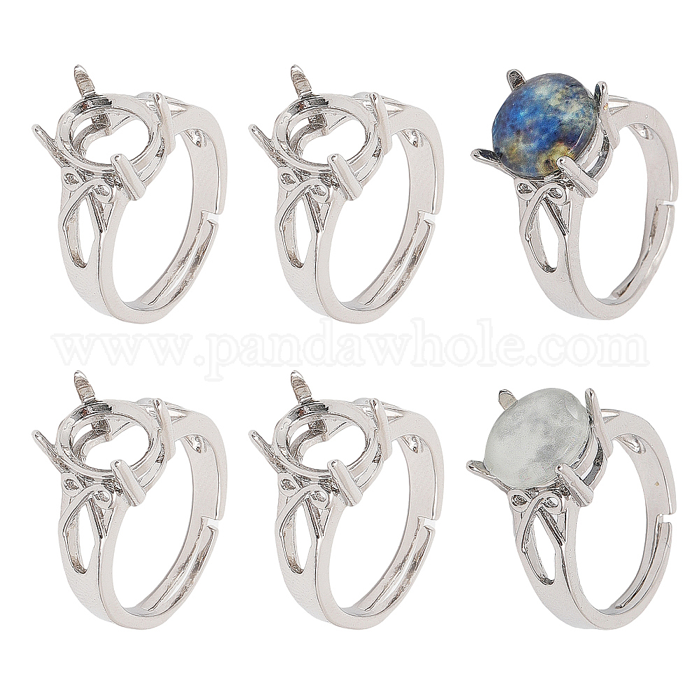 6 шт. регулируемые латунные компоненты кольца на палец, 4 настройки кольца зубца когтя, с кубического циркония, долговечный, овальные