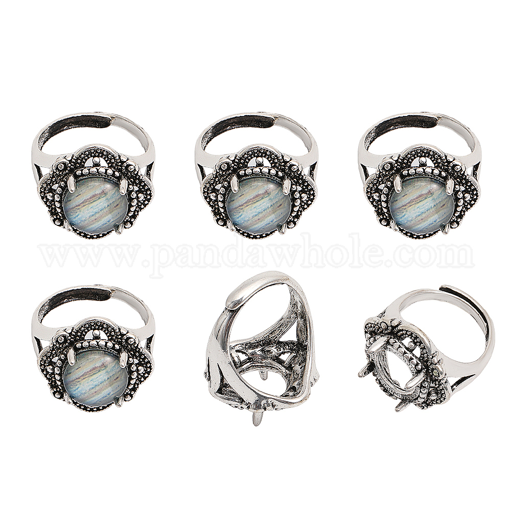 • Античное Серебро 6шт. регулируемые сплавные кольца для пальцев, 4 настройки кольца подушечки зубца когтя, ромб с круглым подносом, античное серебро, внутренний диаметр: 18~21 мм, лоток : 12x12 мм