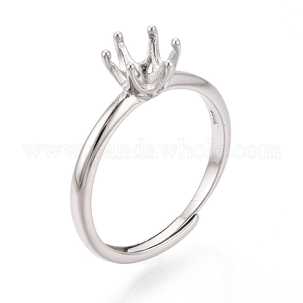 Родиевое покрытие 925 помолвочное кольцо-солитер из стерлингового серебра с регулируемыми настройками, компоненты зубчатого кольца