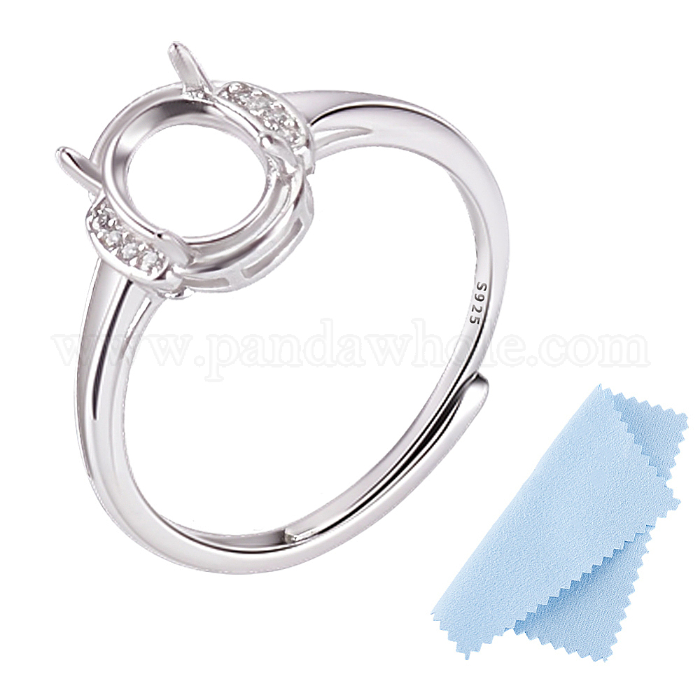 1ПК регулируемый 925 компоненты кольца из стерлингового серебра с кубическим цирконием, настройки зубчатого кольца, с 1 листовой двусторонней замшевой тканью для полировки серебра