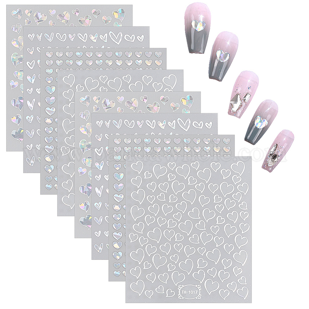 8 листы 4 стили наклейки для дизайна ногтей с лазерным рисунком в виде сердца, самоклеящиеся наклейки для дизайна ногтей для женщин