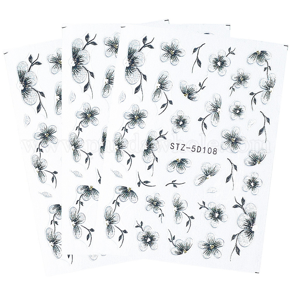 • Черный 3 шт. самоклеящиеся наклейки для дизайна ногтей из АБС-пластика с цветочным рисунком, украшение для украшения ногтей, чёрные, 8.5x6x0.05 см, картина: 6~11x2~23 мм