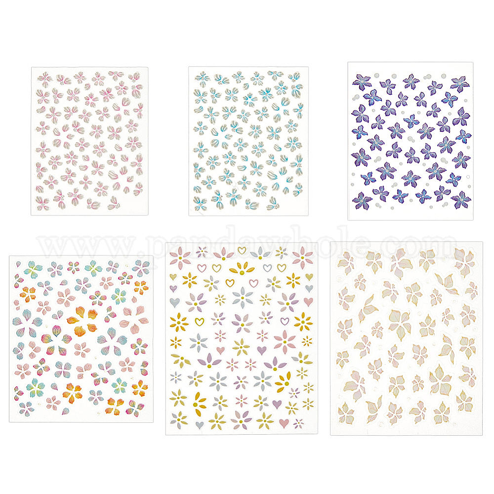 5 шт. 5 стили ПВХ наклейки для дизайна ногтей, самоклеящийся, для украшения ногтей, цветочным узором
