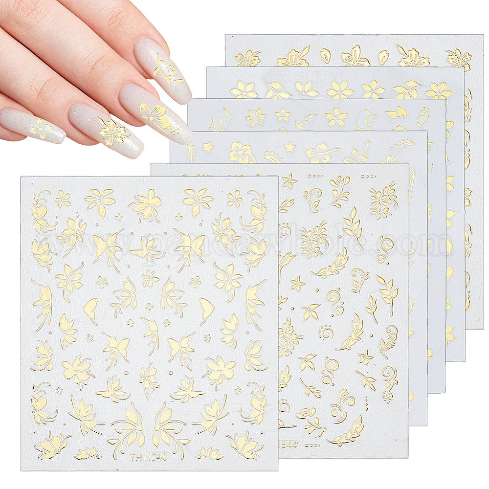 узор из цветов и бабочек, золотые, 10x8x0.01 см, наклейки: 3~13x4~8 мм, 2 листы;