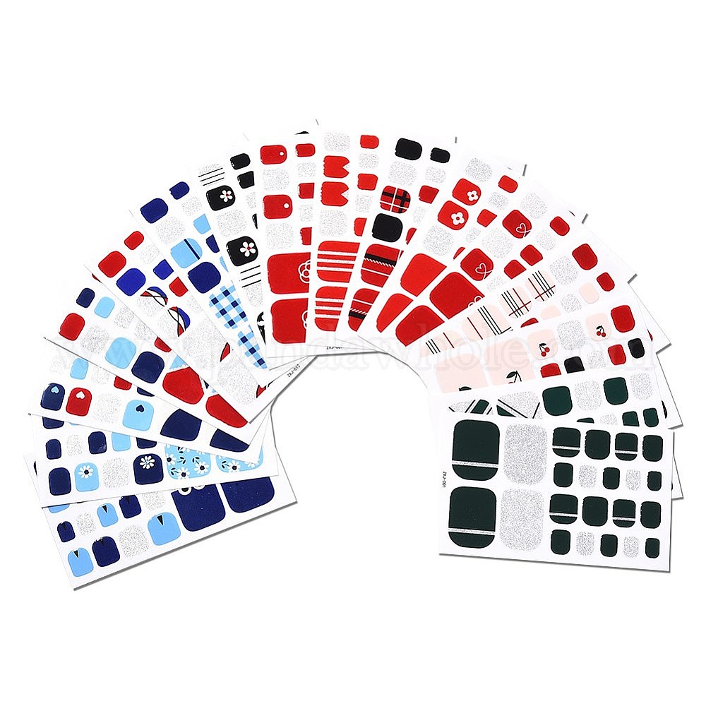 • Смешанные Узоры Блестящая пудра для ногтей на ногтях с полным покрытием наклейки, самоклеящиеся наклейки для лака для ногтей на ногах в клетку тартан, для женщин и девочек diy toenails art design, темно-синий, смешанные узоры, 9.5x5.8 см, 22шт / лист