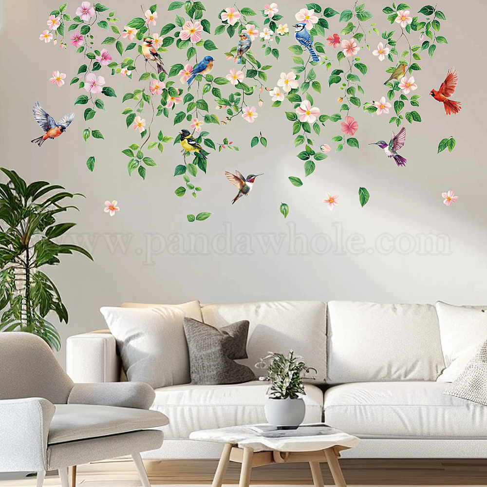 • Птица Полупрозрачные самоклеящиеся наклейки на стену из ПВХ, Водостойкие печатные наклейки для украшения стен дома, гостиной, спальни, птица, 600~900x300~380 мм, 6 шт / комплект