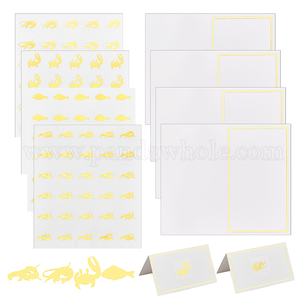 8 листы 4 стили ПВХ водонепроницаемая самоклеящаяся наклейка, мультяшные наклейки для украшения подарочных карт, с 60шт бумажными карточками для расстановки столов, животные / морские животные