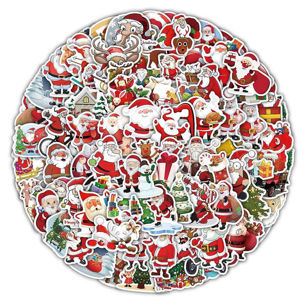 100 шт. рождественские самоклеящиеся наклейки из ПВХ с Санта-Клаусом, водонепроницаемые наклейки на бутылку с водой, шлем, багаж (02HW5B)