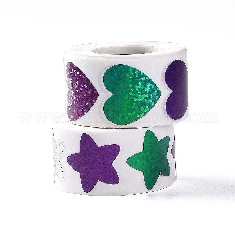 • Сердце 8 узоры ПВХ самоклеющиеся блестящие наклейки, водостойкие красочные наклейки для вечеринки, декоративные подарки, сердце, 25x25 мм, о 500шт / рулон