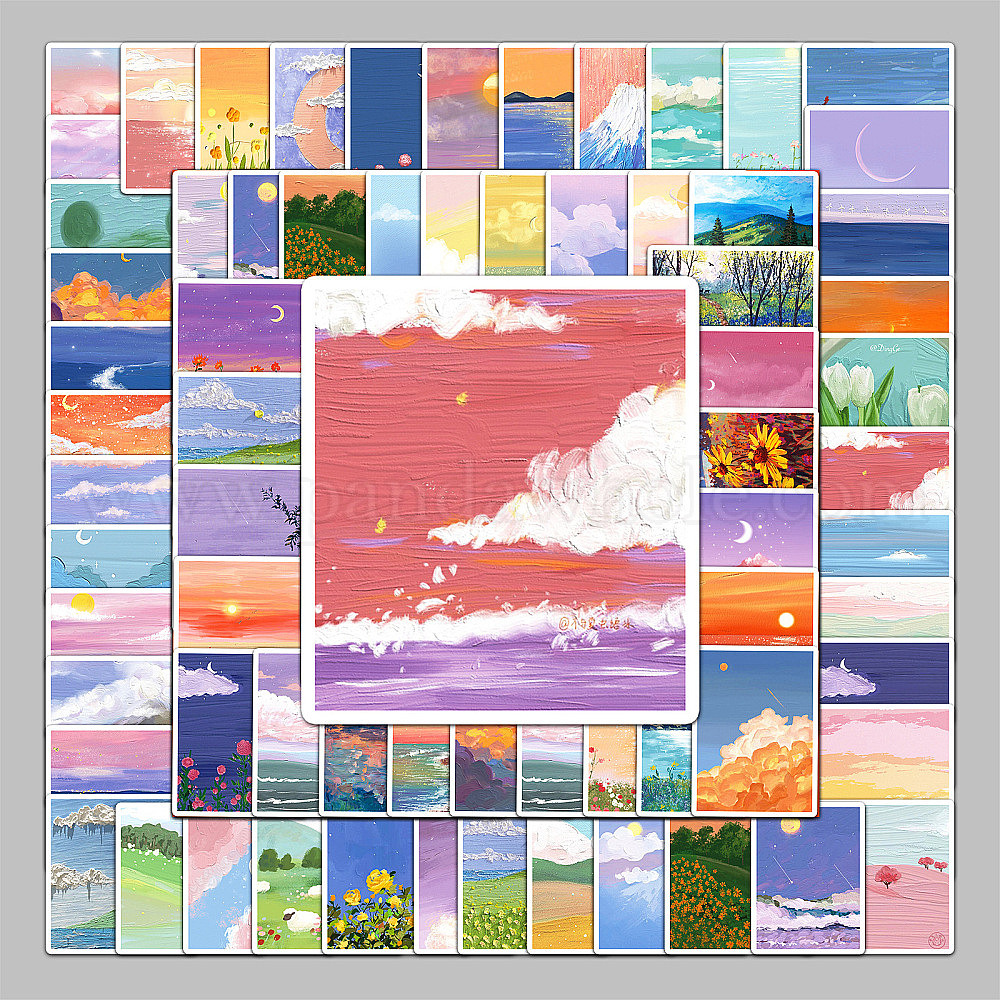 • (52) Непрозрачная лаванда Наклейки из ПВХ на тему пейзажа, самоклеящиеся водонепроницаемые наклейки, для чемодана, скейтборде, холодильник, шлем, оболочка мобильного телефона, разноцветные, 55~85 мм, 100 шт / пакет