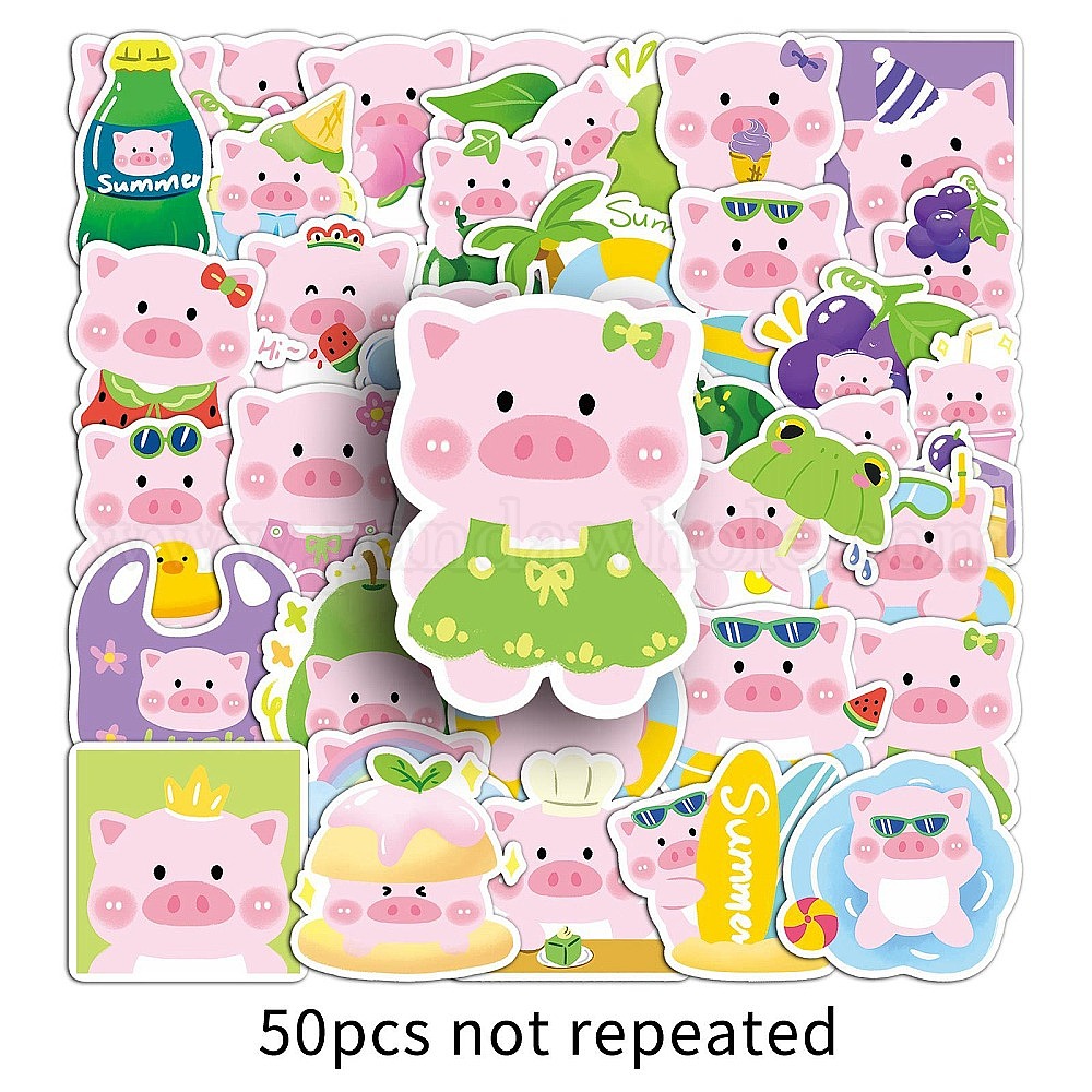 50шт. водонепроницаемые наклейки для животных-свиней, самоклеящиеся наклейки, для чемодана, скейтборде, холодильник, шлем