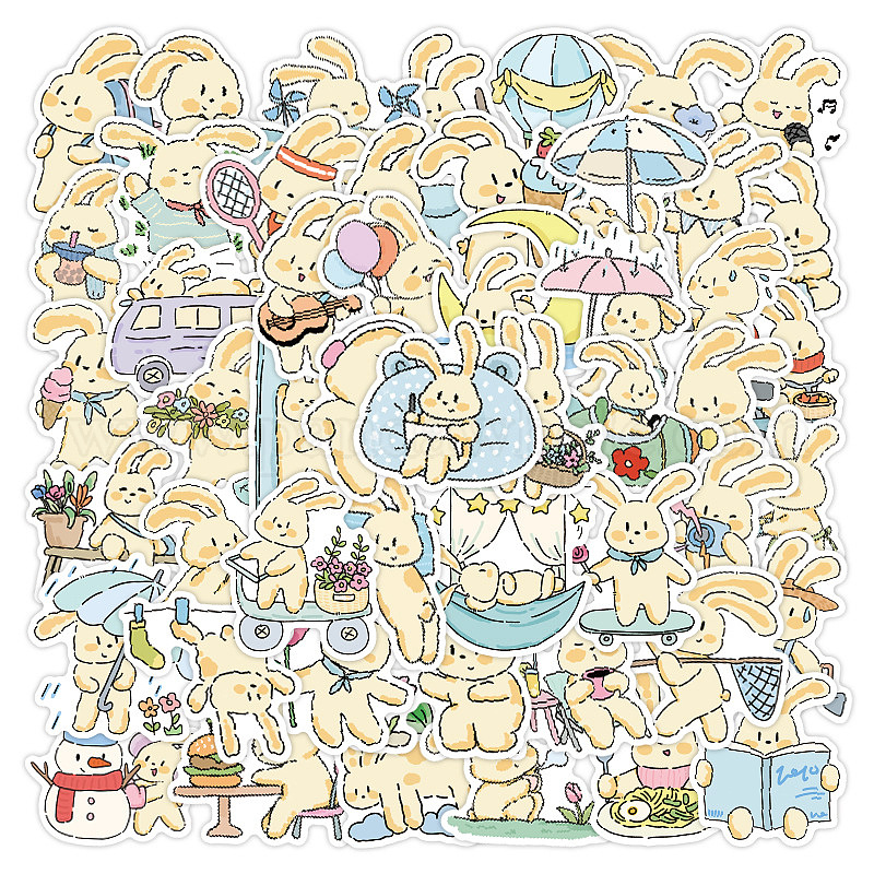 Кролик 50шт ПВХ самоклеящиеся наклейки, водонепроницаемые наклейки, для чемодана, скейтборде, холодильник, шлем, оболочка мобильного телефона
