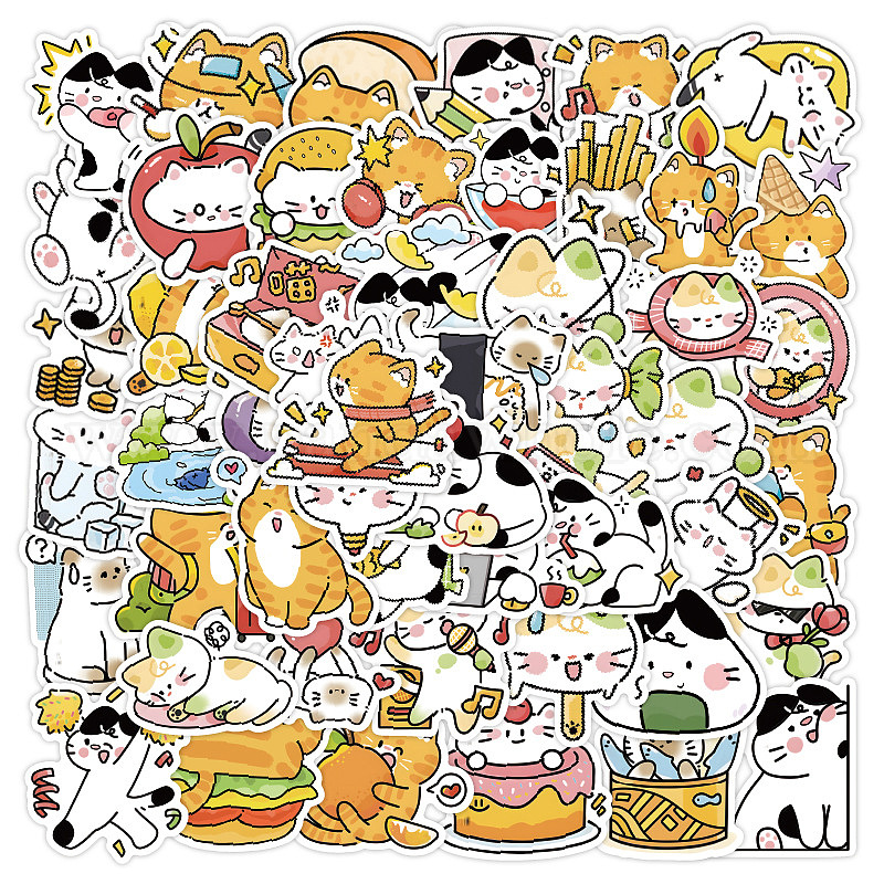 100шт. самоклеящиеся наклейки из ПВХ с рисунком кошки от руки, украсить мобильный телефон и витрину водонепроницаемыми наклейками