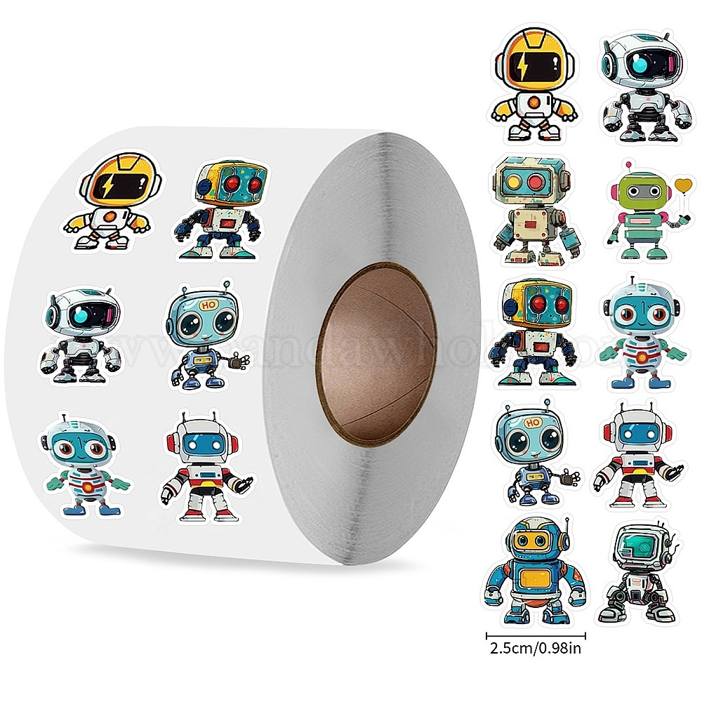 Рулонные наклейки, 10 Наклейки уплотнительные декоративные разные конструкции, робот (02Y6MF)