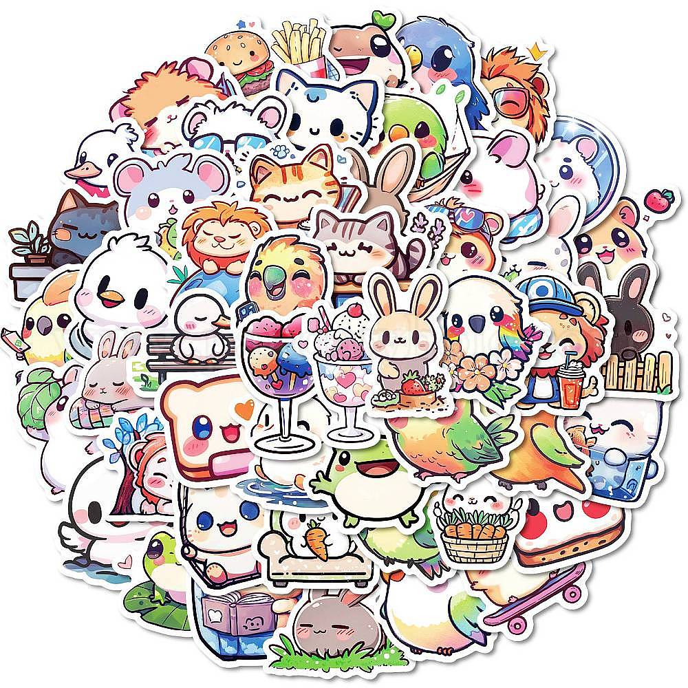 50шт. бумажные наклейки с изображением животных из мультфильмов, самослипание, для чемодана, скейтборде, холодильник, шлем, оболочка мобильного телефона