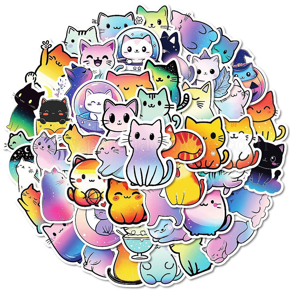 50шт. бумажные наклейки с изображением мультяшного кота, самослипание, для чемодана, скейтборде, холодильник, шлем, оболочка мобильного телефона