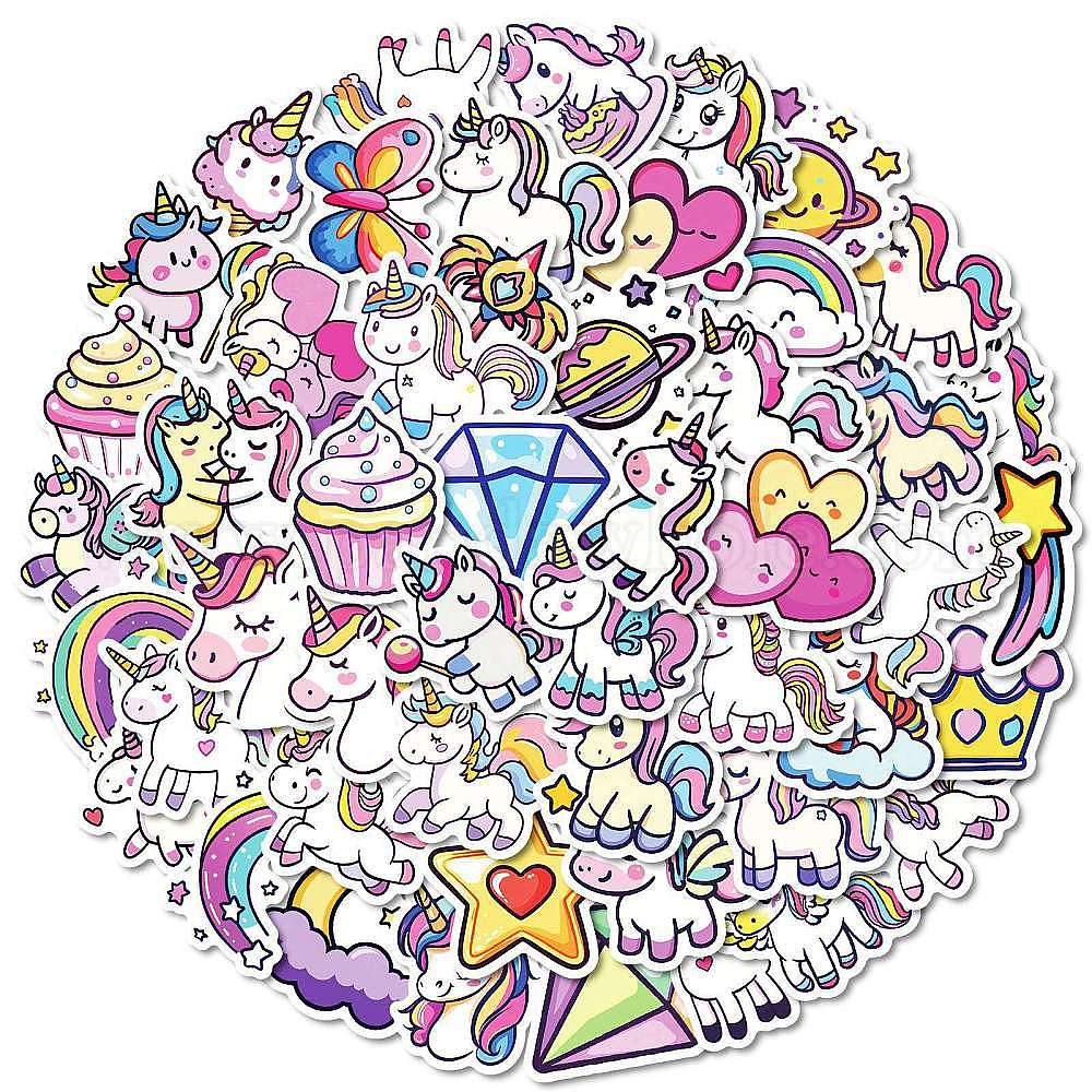 50шт. мультяшная бумажная наклейка с изображением единорога, самослипание, для чемодана, скейтборде, холодильник, шлем, оболочка мобильного телефона