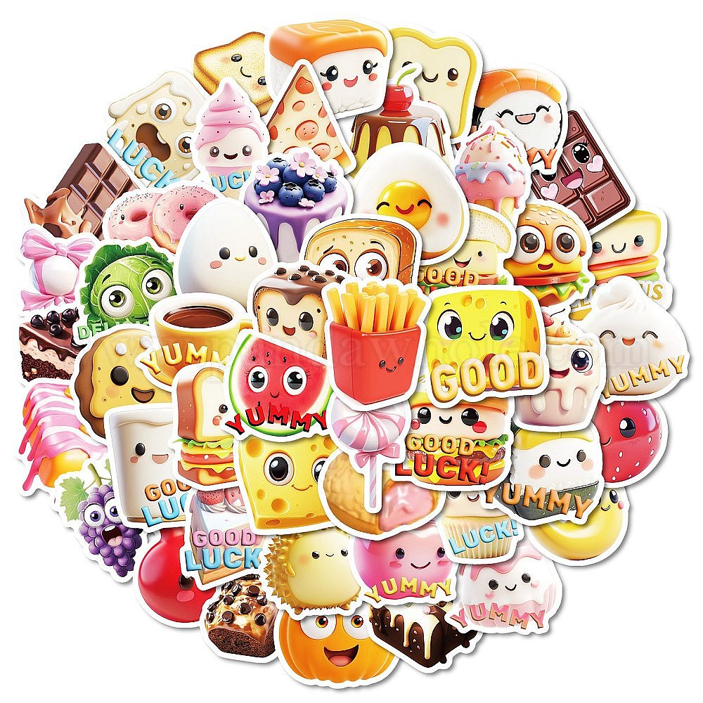 50шт. мультяшная пищевая бумажная наклейка, самослипание, для чемодана, скейтборде, холодильник, шлем, оболочка мобильного телефона