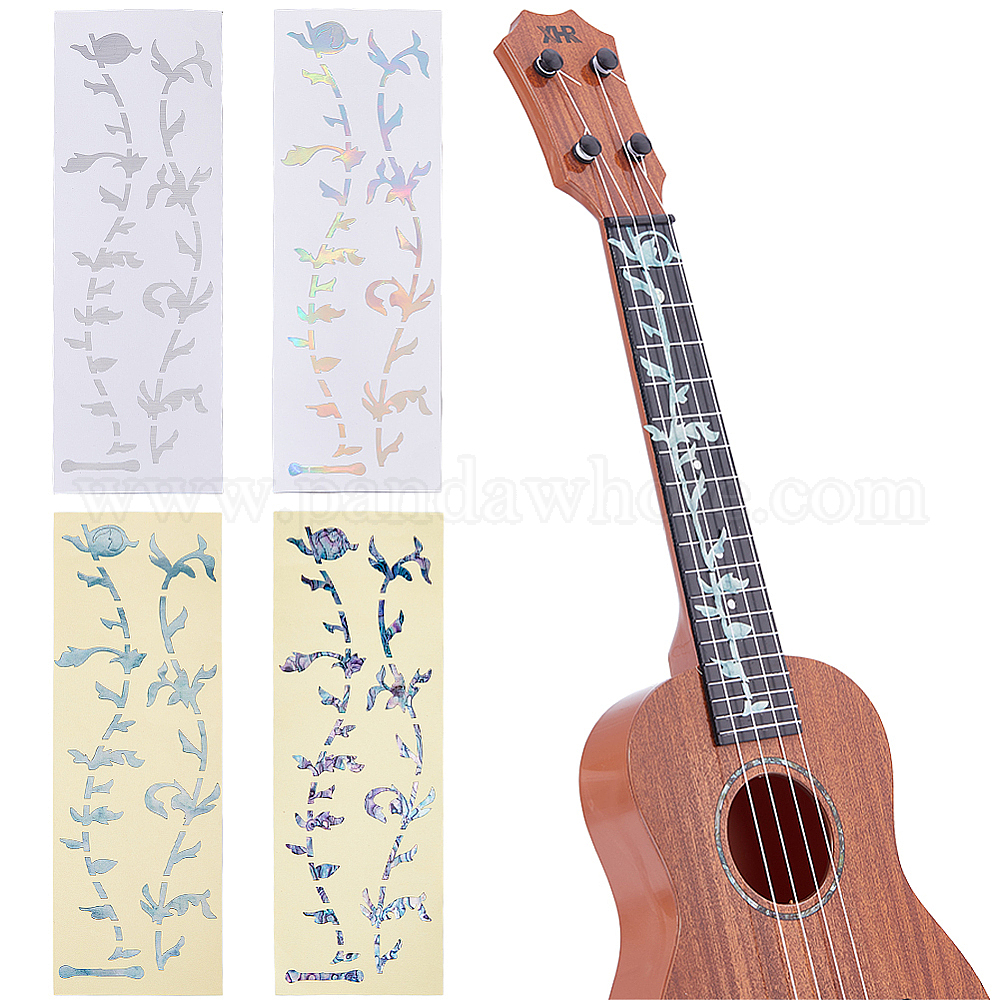 4 листы 4 цветные бумажные наклейки с картинками для украшения грифа гитары, цветок