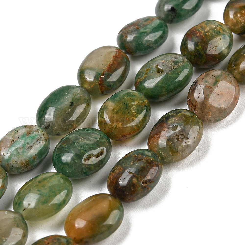 Природные африканские нефритовые бусы пряди, Плоско-овальные