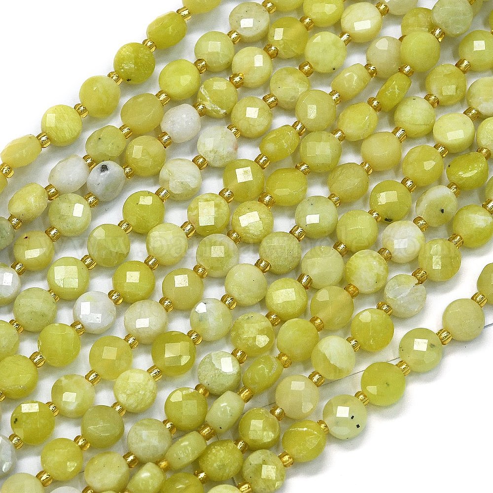 Природного нефрита нитей бисера, с бисером, граненые, плоско-круглые