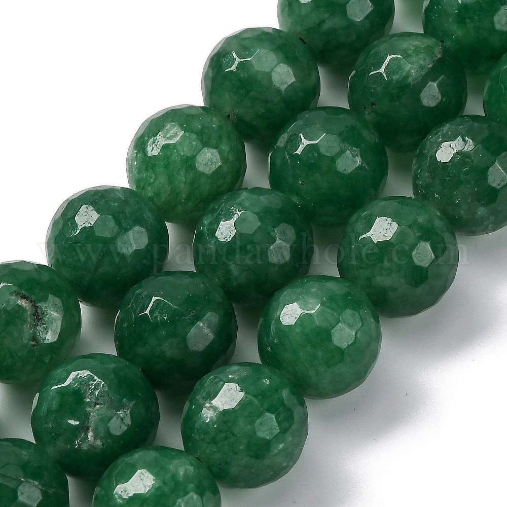 • Зеленый Природные окрашенные белого нефрита нитей бисера, граненые, круглые, зелёные, 15~16 мм, отверстие : 1.5 мм, около 25 шт / нитка, 15.55'' (39.5 см)