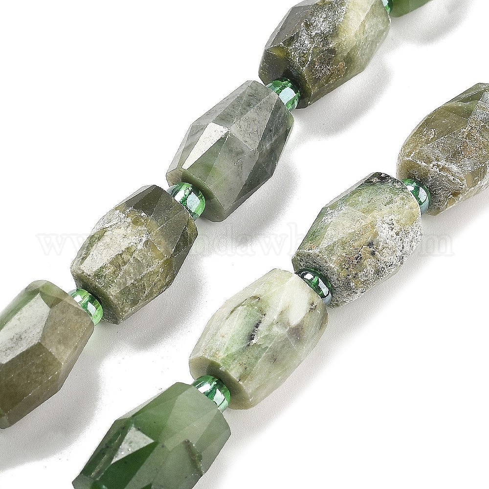 Природного нефрита нитей бисера, с бисером, граненые, баррель