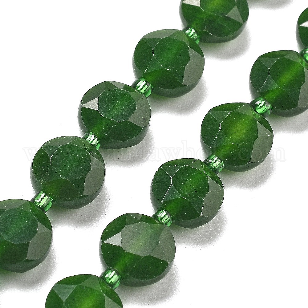 Природного нефрита нитей бисера, граненый пятиугольный разрез, плоско-круглые, с бисером