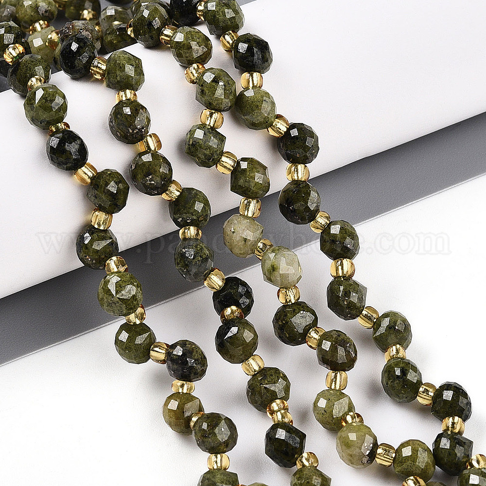 Бусы из натурального канадского нефрита, с бисером, граненые, слеза