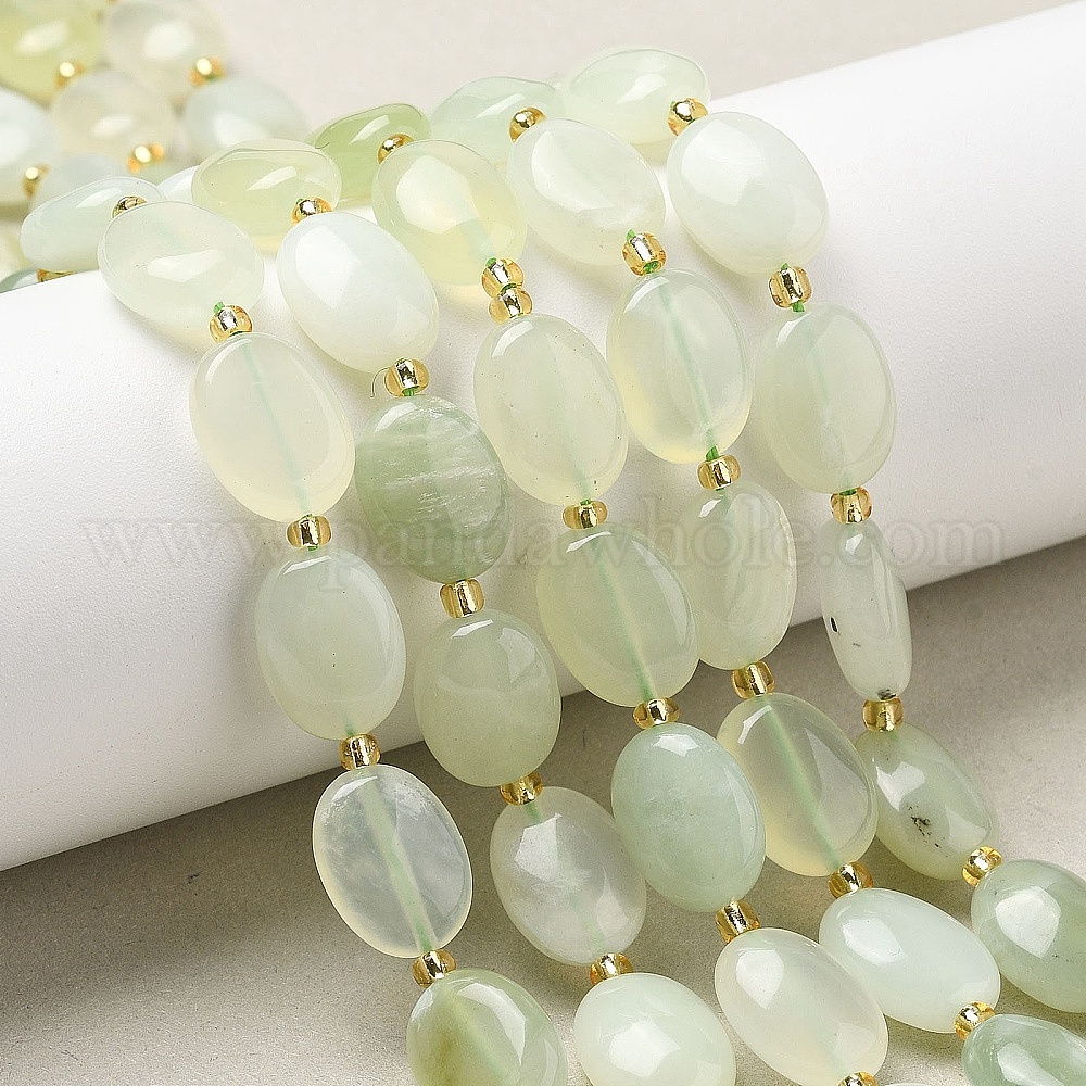 Новых природных нефрита нитей бисера, с бисером, Плоско-овальные