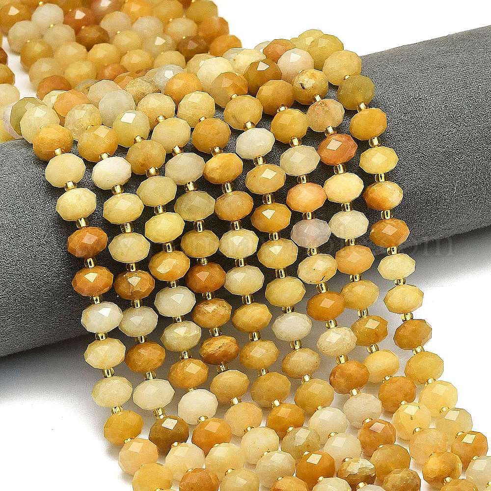 Природный Топаз нефрита бисер нитей, граненые, рондель, с бисером
