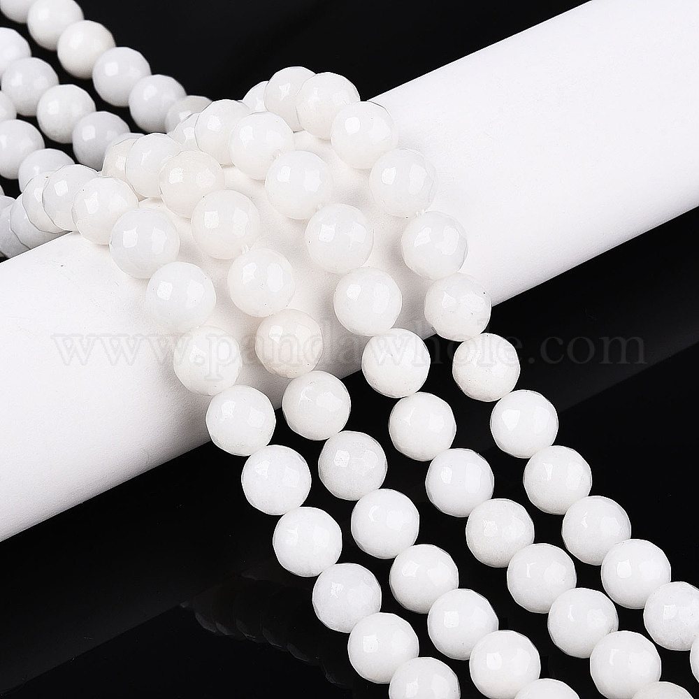 • Снежный Окрашенные природные белый нефрит бисер пряди, круглые, граненые, снег, 5.5~6.2 мм, отверстие : 1 мм, около 65~66 шт / нитка, 14.76~15.16'' (37.5~38.5 см)