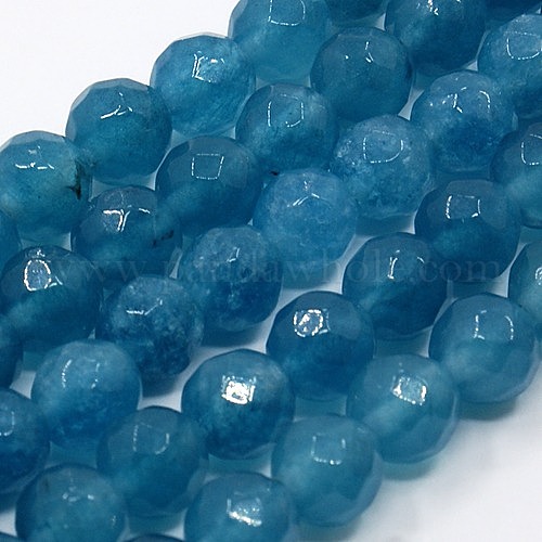 Бусины из натурального белого нефрита, имитация аквамарин цвет, граненые, окрашенные, круглые, голубой (007GCF)