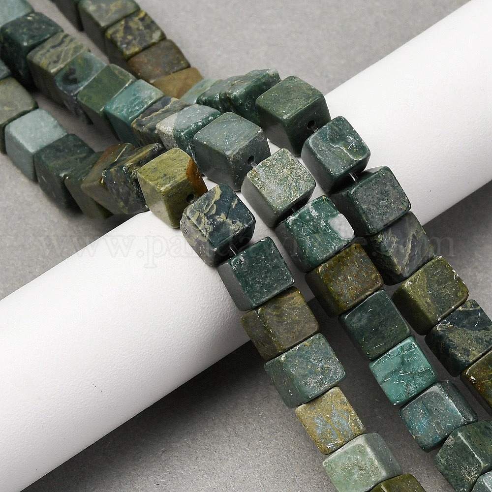 Нити бусин из натурального нефрита шушан, кубические