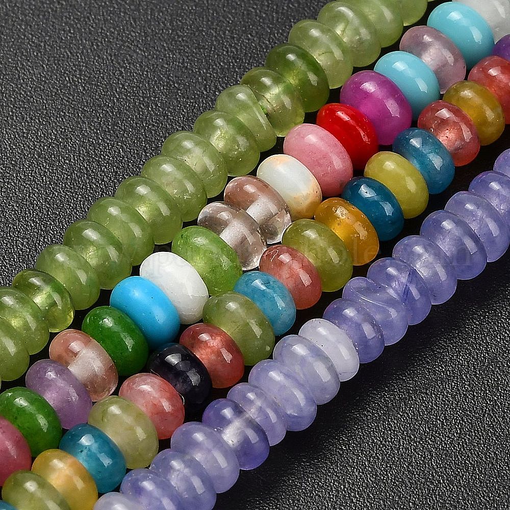 • (52) Непрозрачная лаванда Бусины из натурального белого нефрита, окрашенные, рондель, разноцветные, 4x1.5 мм, отверстие : 0.7 мм, около 155 шт / нитка, 14.96'' (38 см)