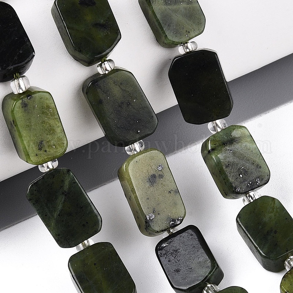 Бусы из натурального канадского нефрита, с бисером, прямоугольные