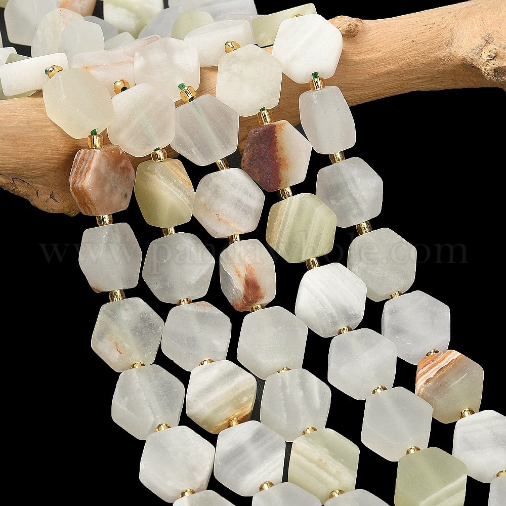 Природные Афганские нефритовые бусы пряди, форма шестиугольника, с бисером