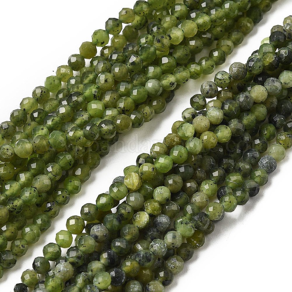 Природного зеленого нефрита нитей бисера, граненые, круглые