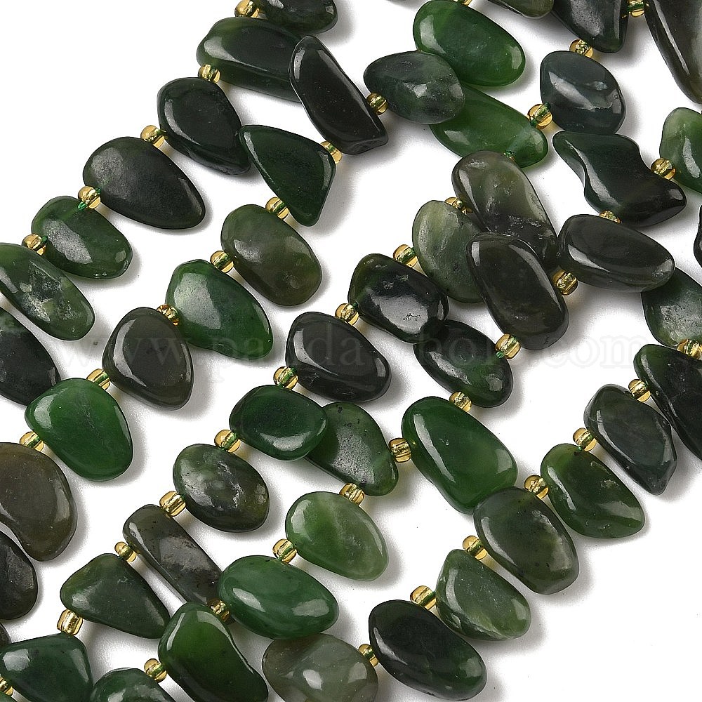 Бусы из натурального канадского нефрита, слеза, Топ пробуренной, с бисером