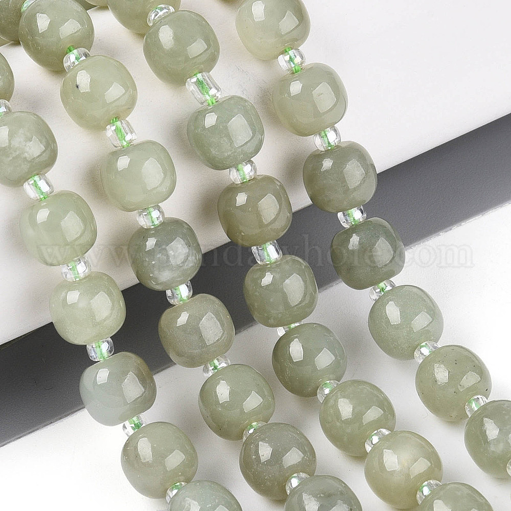 Нити натуральных нефритовых бусин гетянь, баррель, с бисером (039XZW)