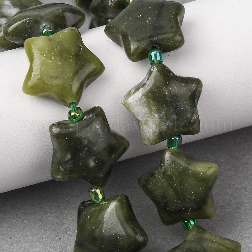 Природного зеленого нефрита нитей бисера, звезда, с бисером